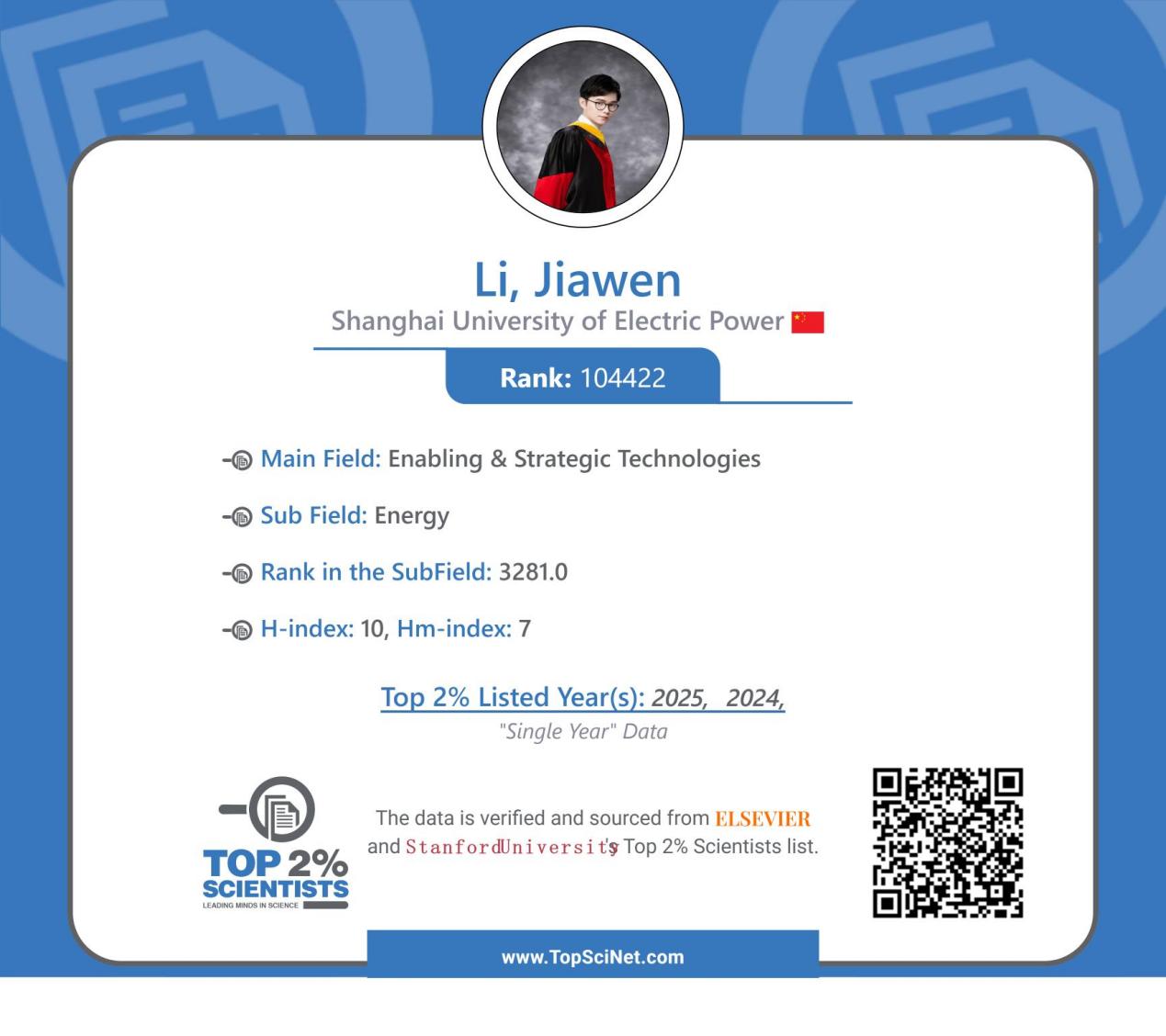 2025年9月19日,美国斯坦福大学与爱思唯尔(Elsevier)数据库共同发布了《全球前2%顶尖科学家榜单2025》。我院李嘉文副教授入选本年度“年度科学影响力排行榜”,位列全球前2%顶尖科学家之列。这是李嘉文副教授继去年入选后,第二次获此殊荣。